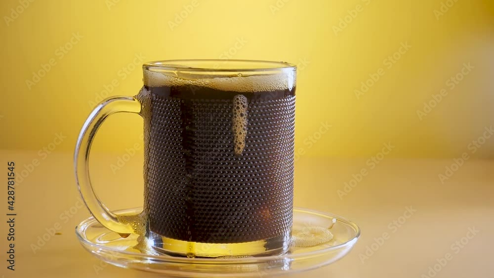 Een transparante amberkleurige schedel roteert en staat voor de camera