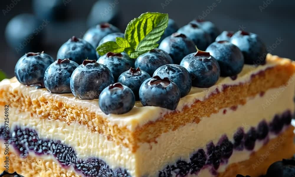 Bosbessen en groene bladeren op een gele achtergrond. Film blueberry 4k video. Rijpe en sappige verse geplukte bosbessen dicht omhoog. Bovenaanzicht