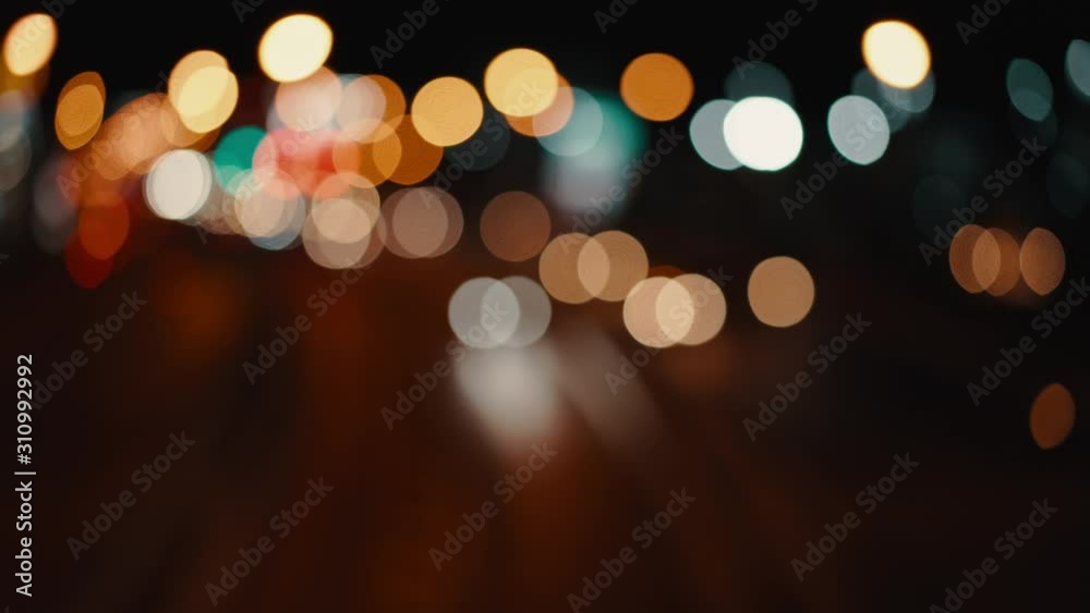 Beeld dat van achtergrond de lichte auto bij nacht defocusing.