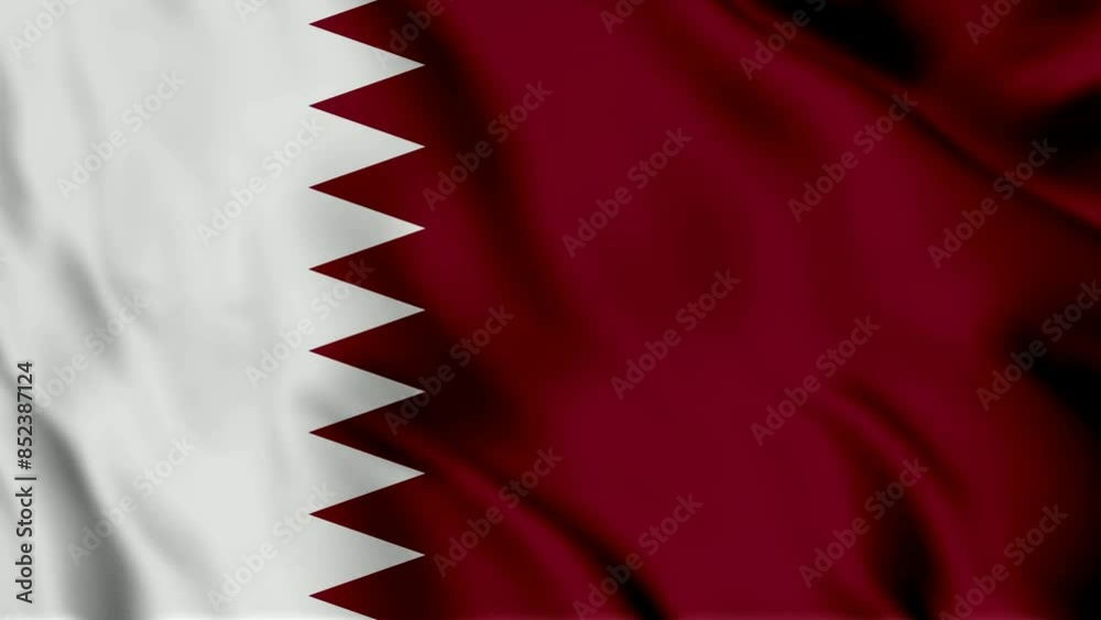 Hier in deze voorraadvideo vind je de vlag van Qatar die in een luspatroon golft. Zorg er alstublieft voor om onze gratis downloadbare video van een Universal Flag Matte te bekijken die op al onze vlagvideo's past, zodat u het over uw ontwerpen kunt gebruiken.