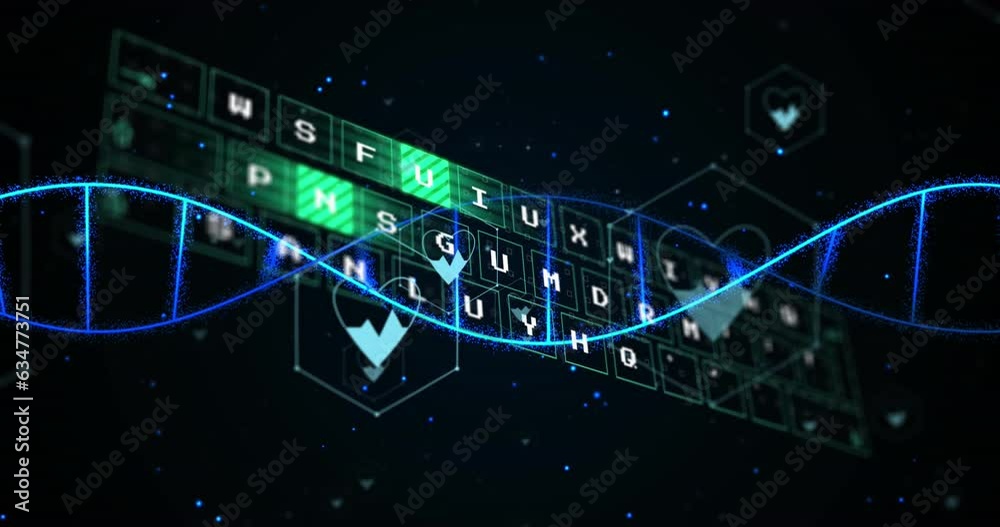Digitaal hologram van roterende dubbele helix van DNA.