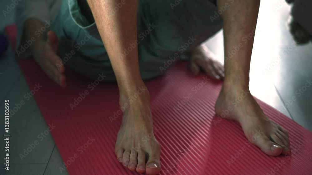 De holdingsdomoor van de jonge mensenhand omhoog oefeningen bij gymnastiekgeschiktheid