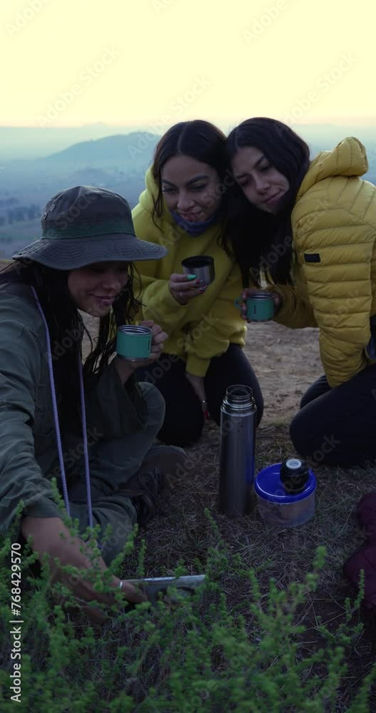 Achteraanzicht van toeristische wandelen op het gazon en het nemen van foto vanaf de heuveltop
