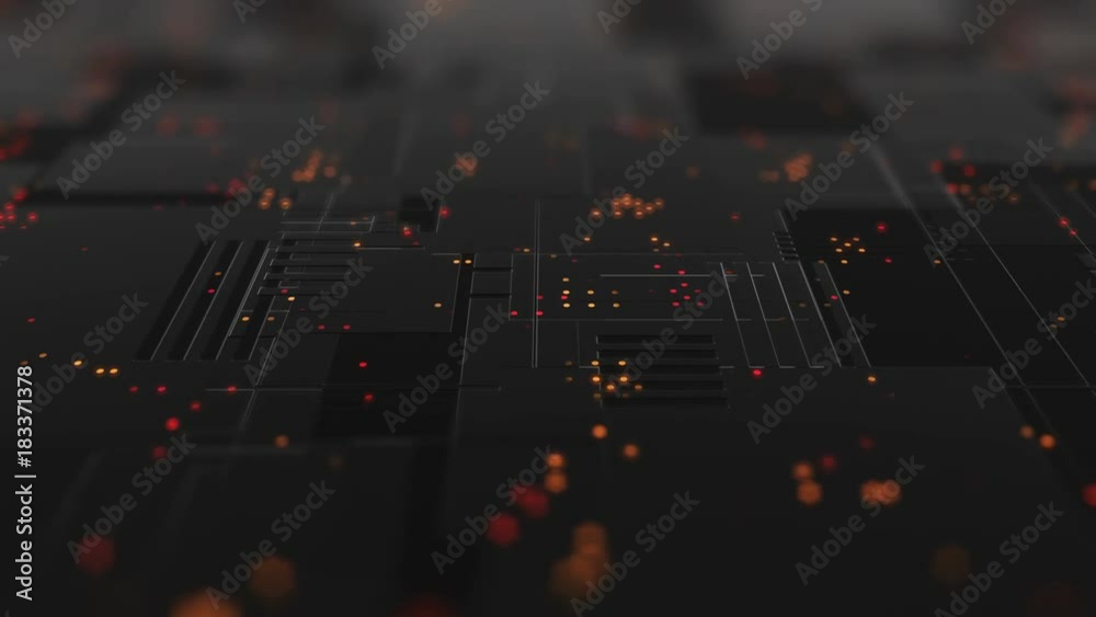 Gloeiende abstracte neonlichtentunnel met technische hud-look